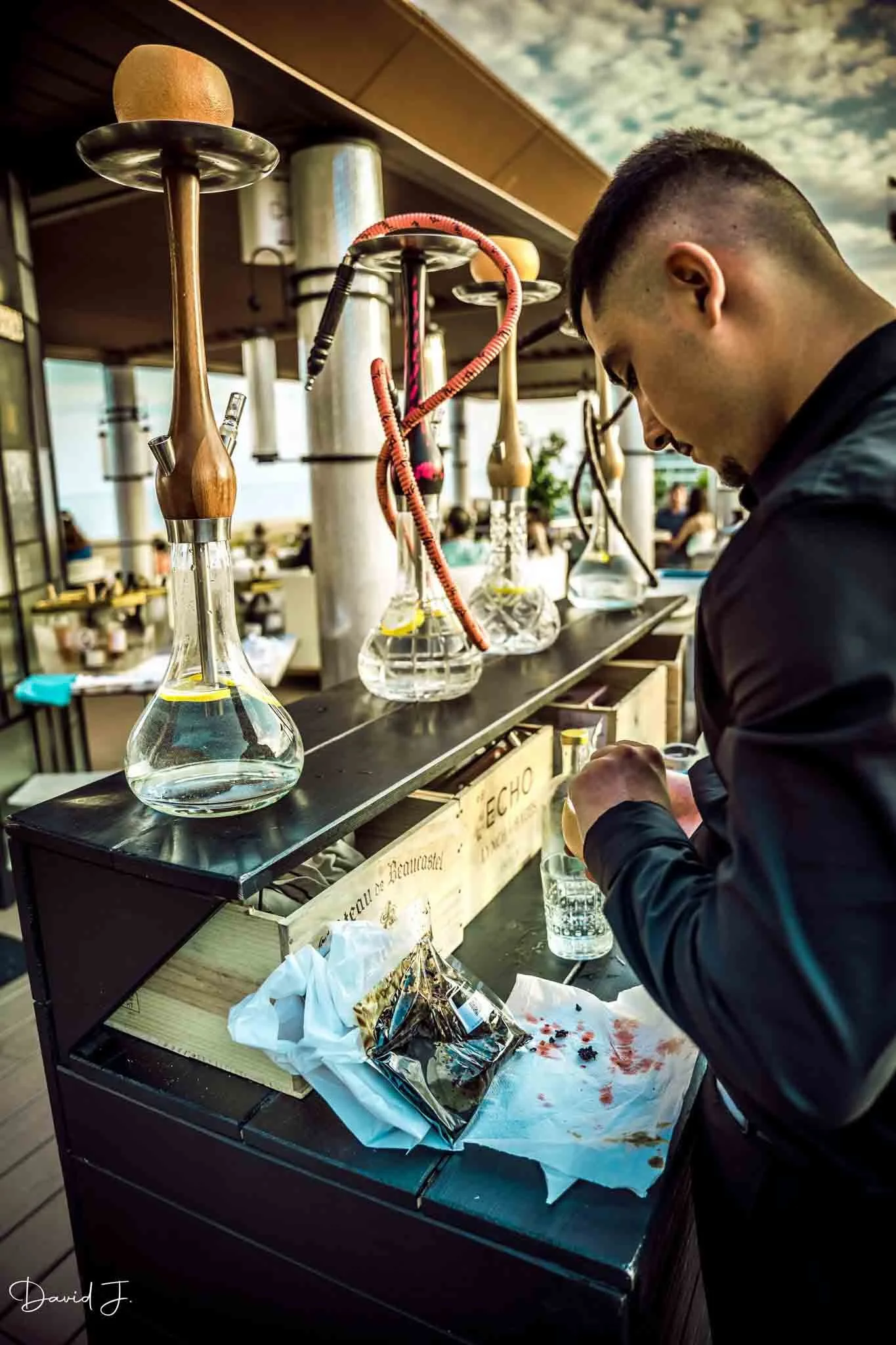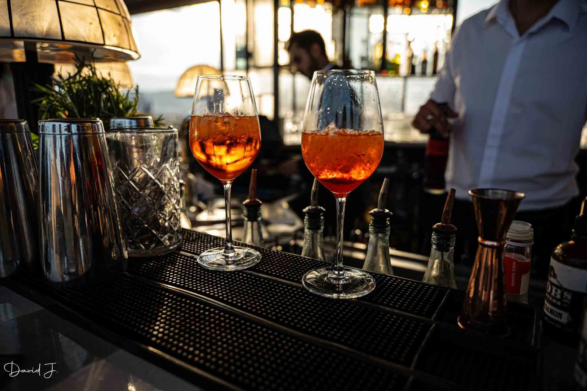 Shooting photo pour la partie bar et scène de l'Anantara à Nice. Mise en valeur de l'ambiance lounge, des cocktails signature et de l'atmosphère nocturne chic de cet établissement premium.
